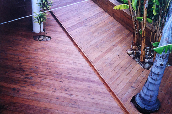 Besides the use of good-old-fashion wood, decks can be made with different kinds of composite material which mimic the look of wood. It may be hard to find or afford a material that looks as authentic a real wood, but the maintenance is much easier. Real wood requires annual treatment to remain looking good.